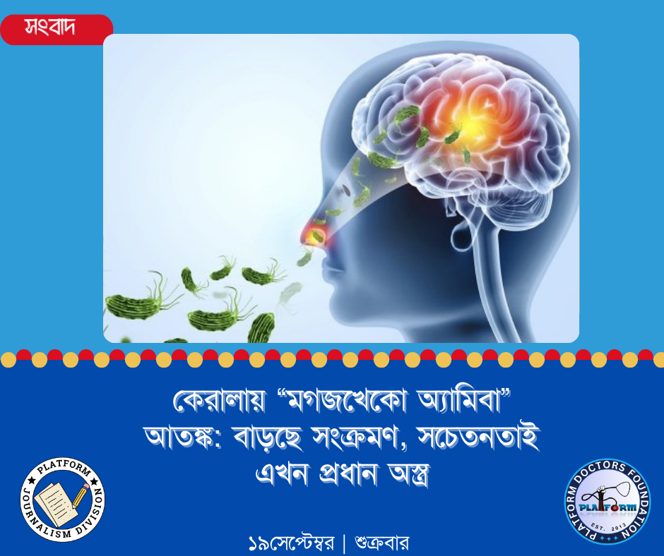 দক্ষিণ ভারতের কেরালা রাজ্যে দ্রুত ছড়িয়ে পড়ছে এক বিরল কিন্তু প্রাণঘাতী সংক্রমণ— “মগজখেকো অ্যামিবা” বা Naegleria fowleri। সম্প্রতি মালাপ্পুরাম জেলার ৪৫ বছর বয়সী এক নারী Primary Amoebic Meningoencephalitis (PAM)-এ আক্রান্ত হয়ে মারা যাওয়ার পর রাজ্যজুড়ে জনস্বাস্থ্য মহলে উদ্বেগ তৈরি হয়েছে।