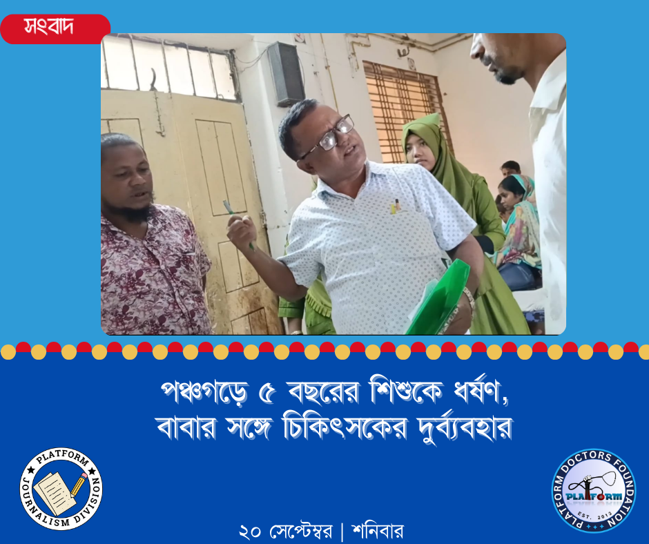 একদিকে পাঁচ বছরের এক শিশুকে ধর্ষণের মতো নৃশংস ঘটনা, অন্যদিকে হাসপাতালে চিকিৎসা নিতে এসে তার বাবার সঙ্গে চিকিৎসকের অমানবিক আচরণ—দুটো ঘটনাই পঞ্চগড় জেলায় ব্যাপক আলোচনার জন্ম দিয়েছে। সামাজিক যোগাযোগমাধ্যমে নিন্দার ঝড় বইছে এবং অভিযুক্তদের দৃষ্টান্তমূলক শাস্তি দাবি করছে সচেতন মহল।